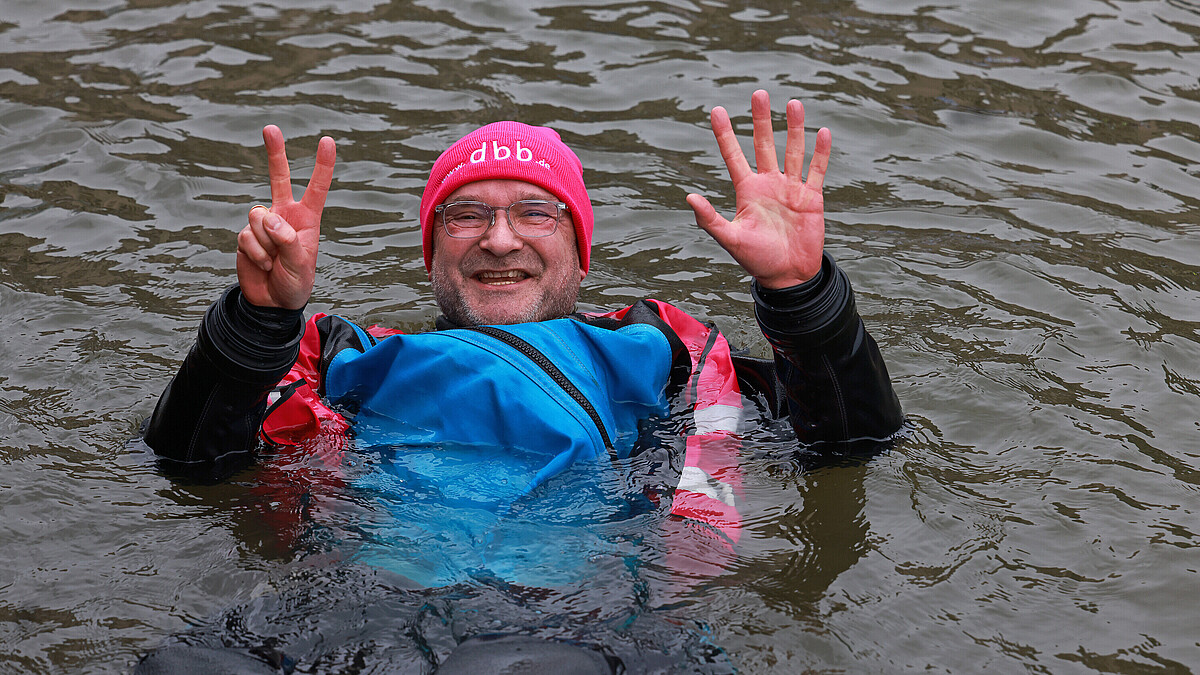 „Wir gehen baden, damit der Norden nicht absäuft“ - so lautete das Motto der Protestaktion des dbb in Hamburg. Einige Protestierende sprangen in die Elbe, um ein Zeichen gegen die Kälte der Arbeitgeberpolitik zu setzen.